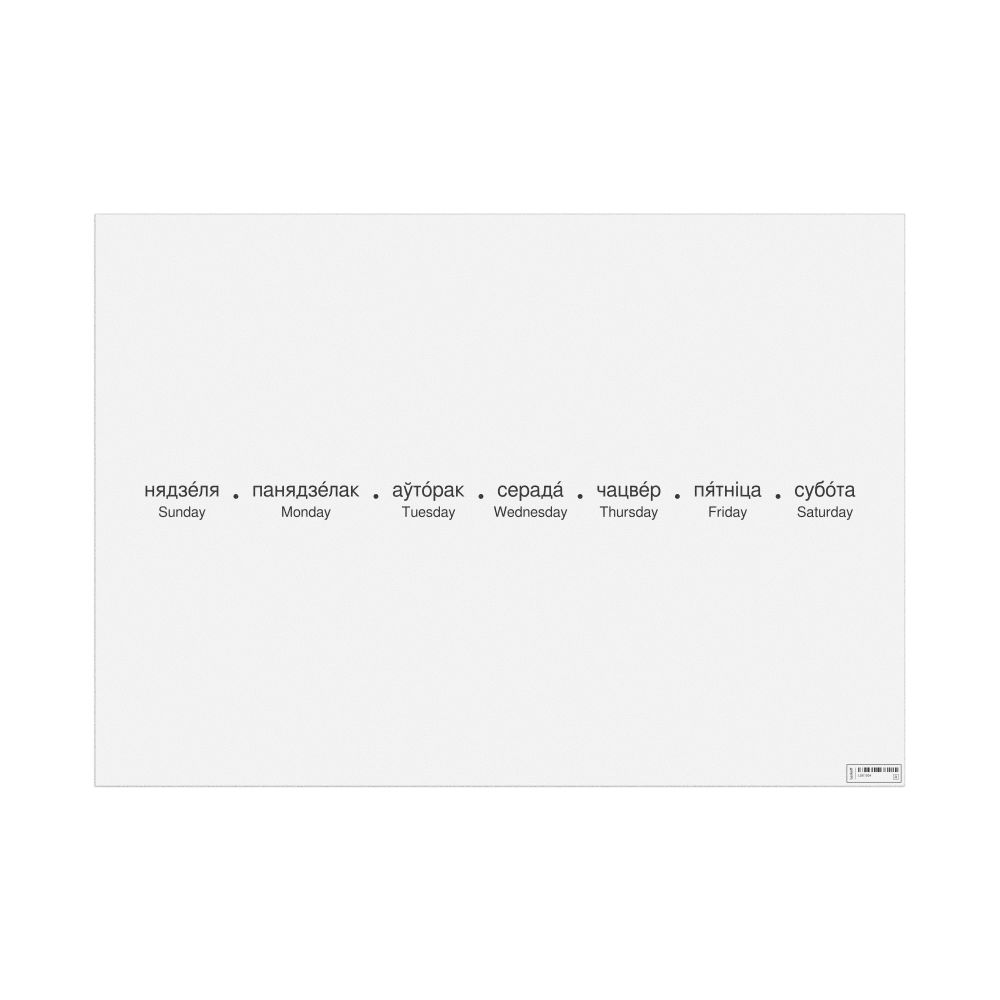 A poster of the days of the week in Belarusian (Дні тыдня) with English translations.