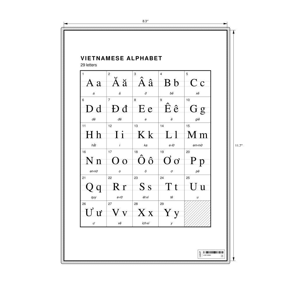 Vietnamese Alphabet Chart8.3 x 11.7 in (21.0 x 29.7 cm, Desk Chart, Laminated)