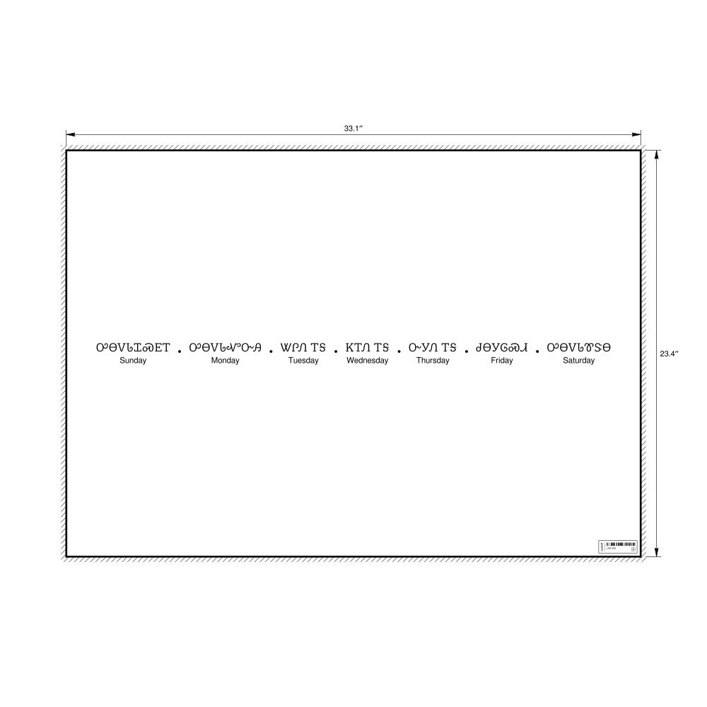 A poster of the days of the week in Cherokee (ᏑᎾᏙᏓᏆᏍᏗ) with English translations.