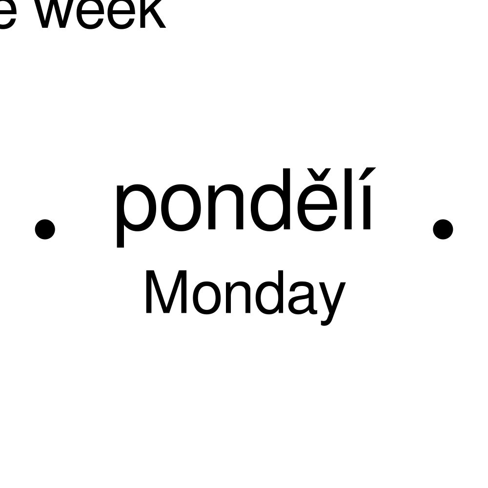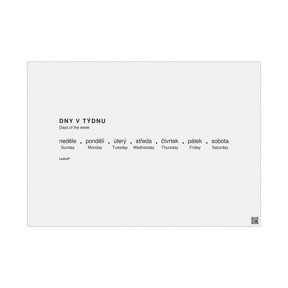 A poster of the days of the week in Czech (Dny v týdnu) with English translations.