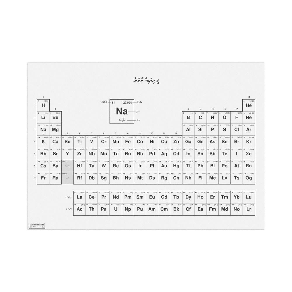 Maldivian speakers seeking scientific references in their language - This Maldivian-language periodic table chart makes universal scientific truths accessible in your native tongue.