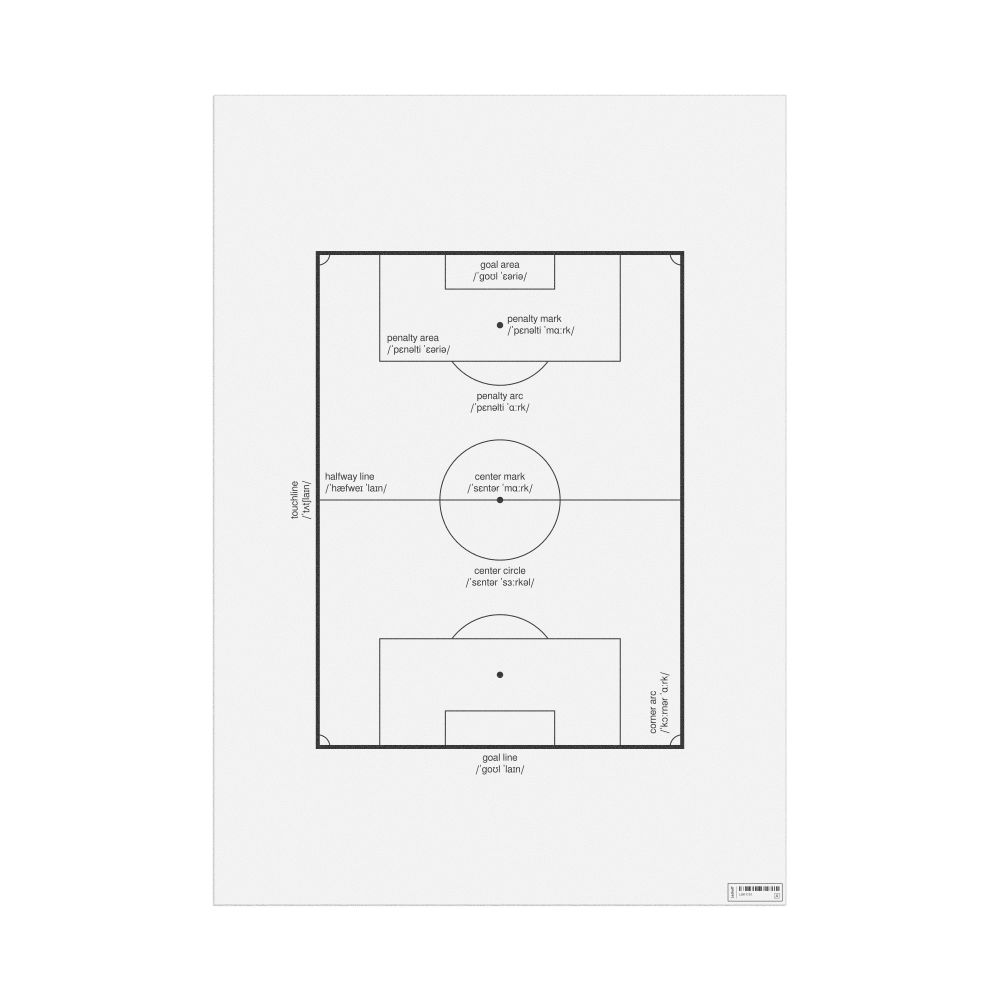 A poster of a soccer field diagram in English with IPA phonetic transcriptions (pronunciation guides).