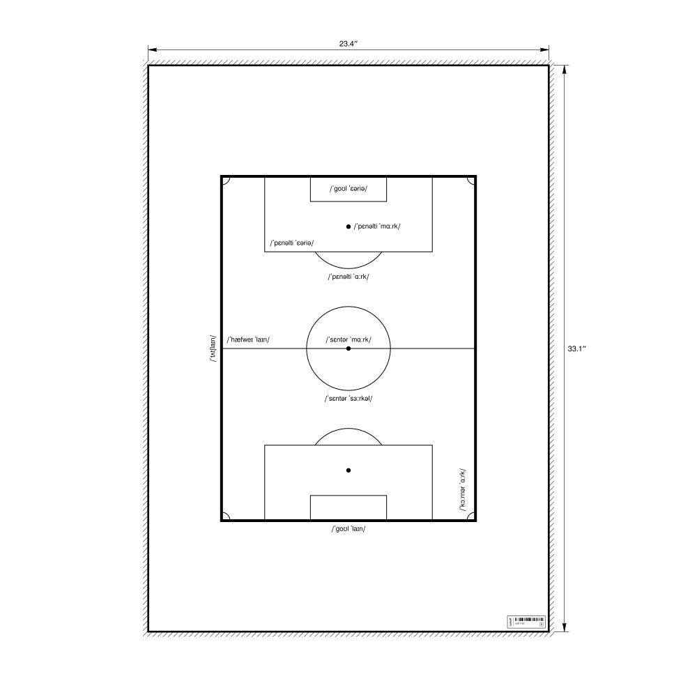 A poster of a soccer field diagram in IPA (International Phonetic Alphabet) for English.