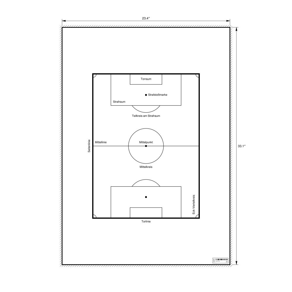 A poster of a soccer field diagram in German (Fußballfeld).