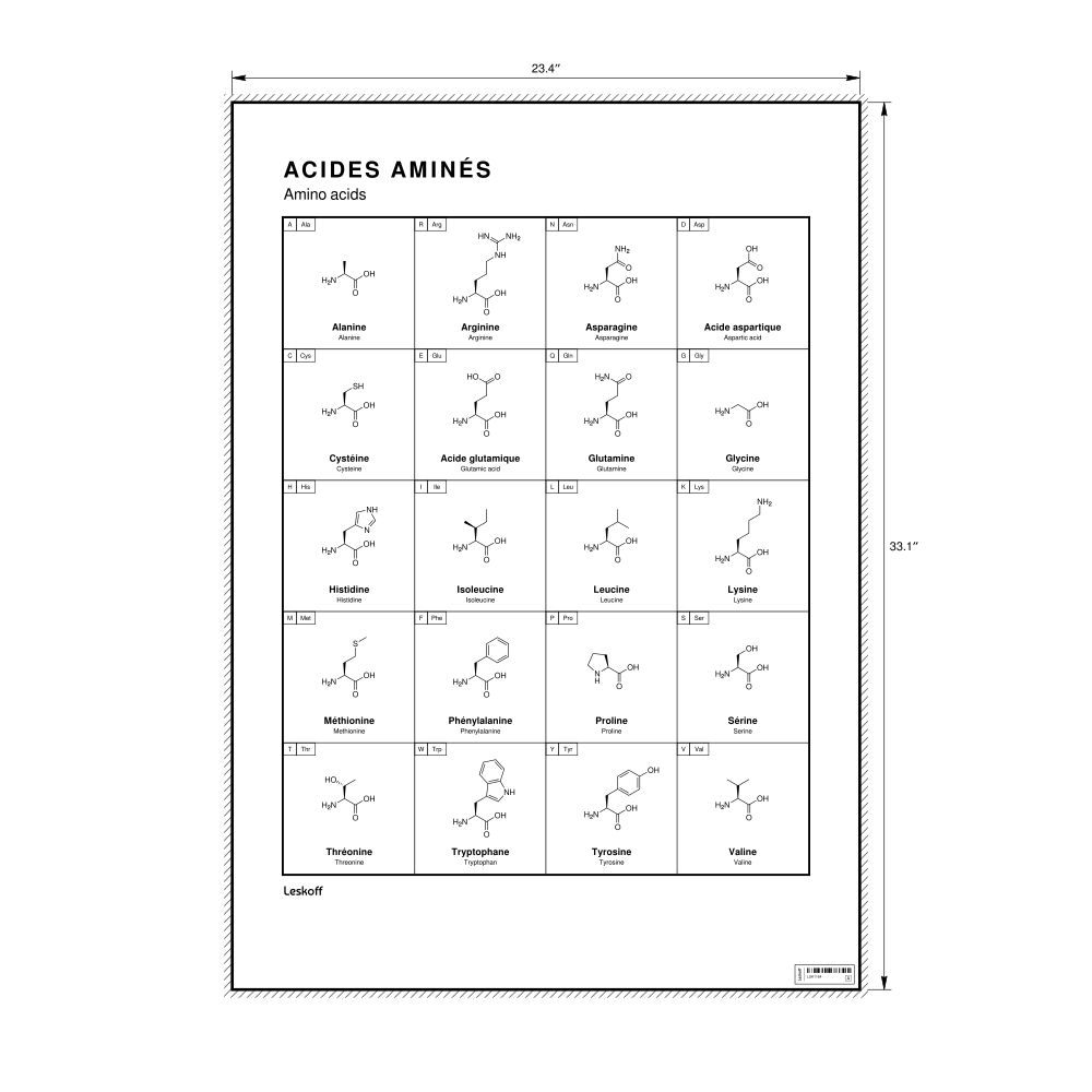 Amino Acids Wall Chart (Amino Acids Poster)French/English-Labeled
