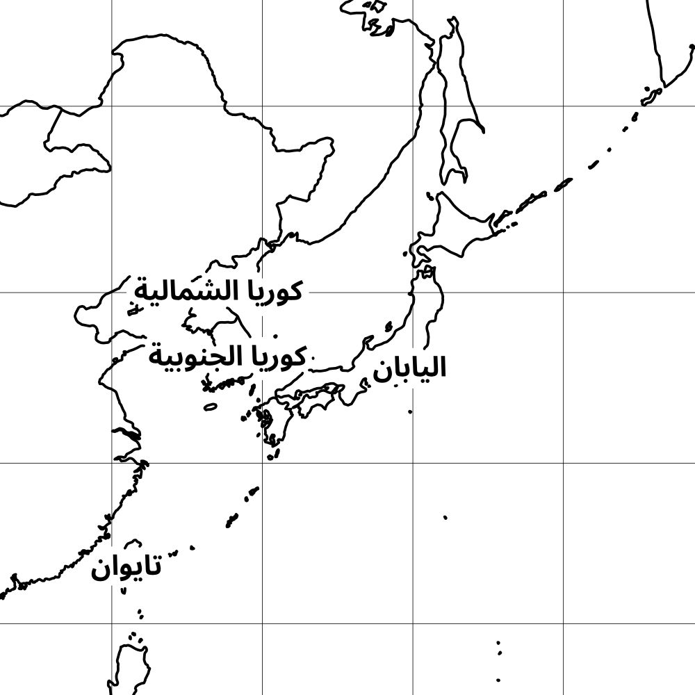 An Arabic map of the world (countries and regions).