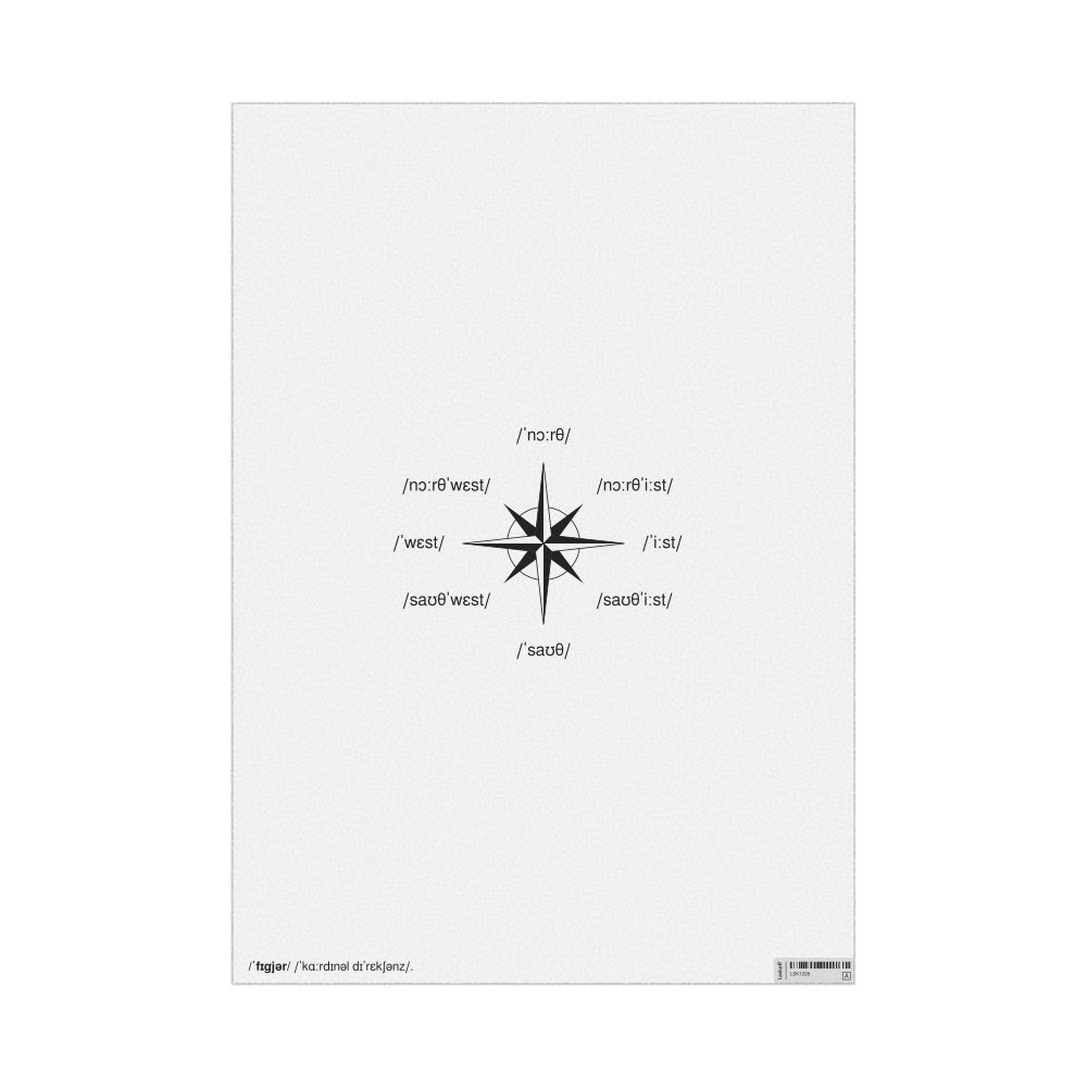 A poster of the cardinal directions (also known as compass points) in IPA (International Phonetic Alphabet) for English.