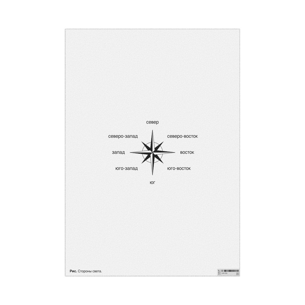A poster of the cardinal directions (also known as compass points) in Russian (Стороны света).