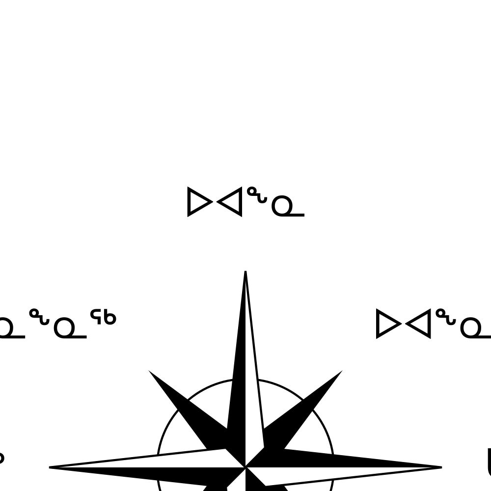 A poster of the cardinal directions (also known as compass points) in Inuktitut (ᓇᑭᖖᒑᕐᓃᑦ).