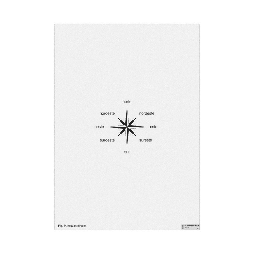 A poster of the cardinal directions (also known as compass points) in Asturian (Puntos cardinales).