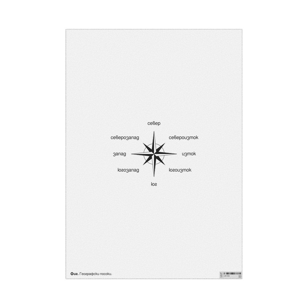 A poster of the cardinal directions (also known as compass points) in Bulgarian (Географски посоки).