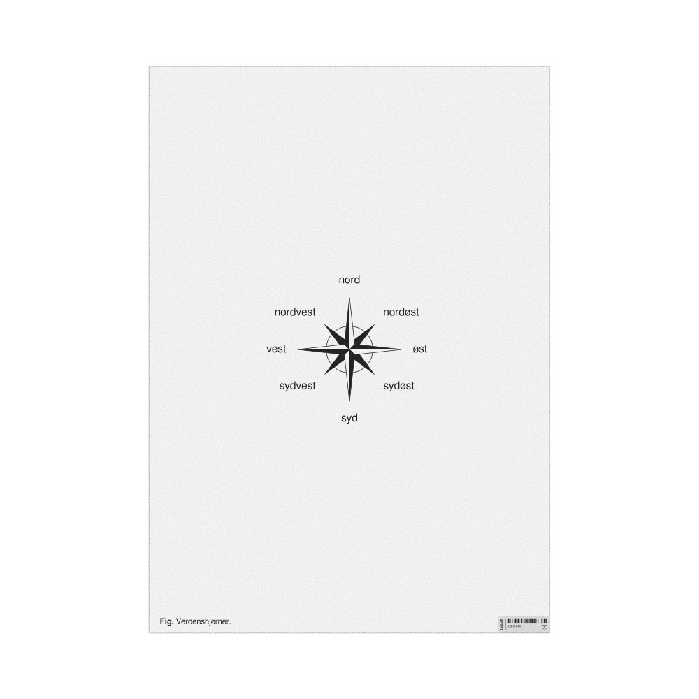 A poster of the cardinal directions (also known as compass points) in Danish (Verdenshjørner).