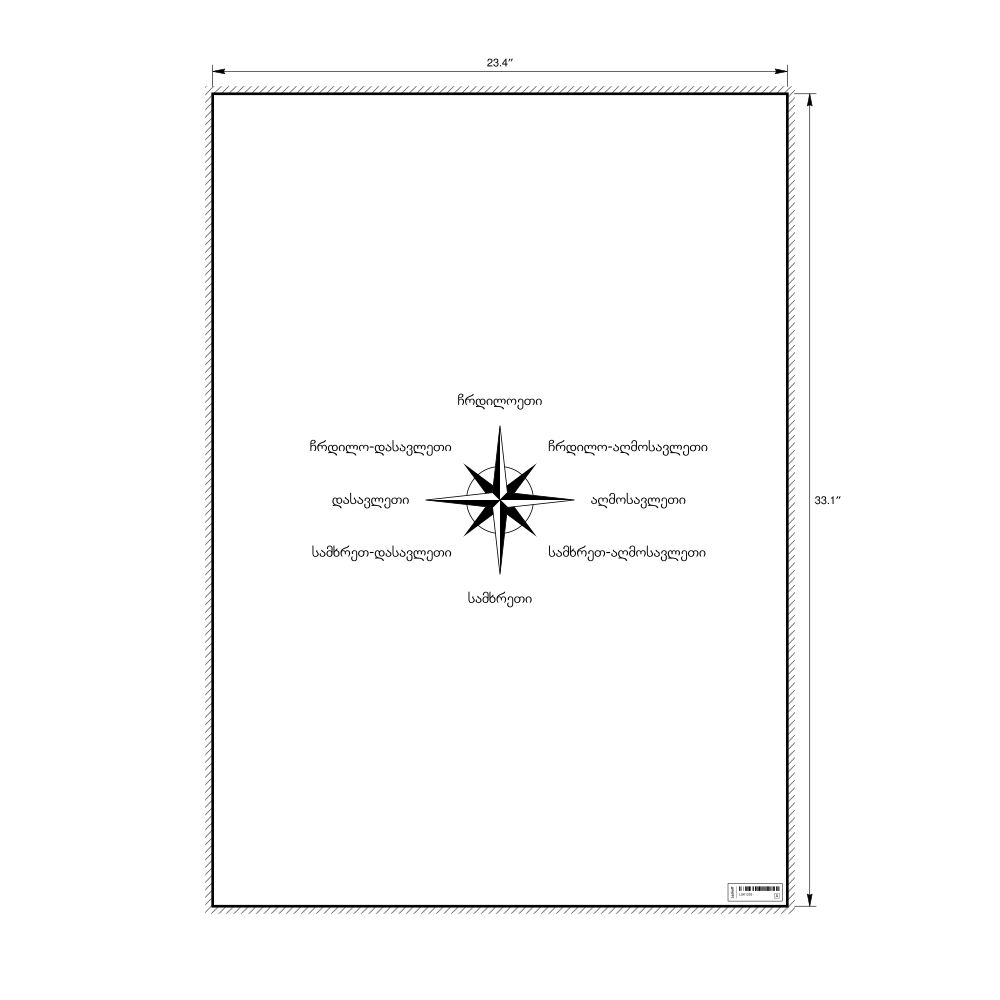 A poster of the cardinal directions (also known as compass points) in Georgian (ჰორიზონტის მხარეები).
