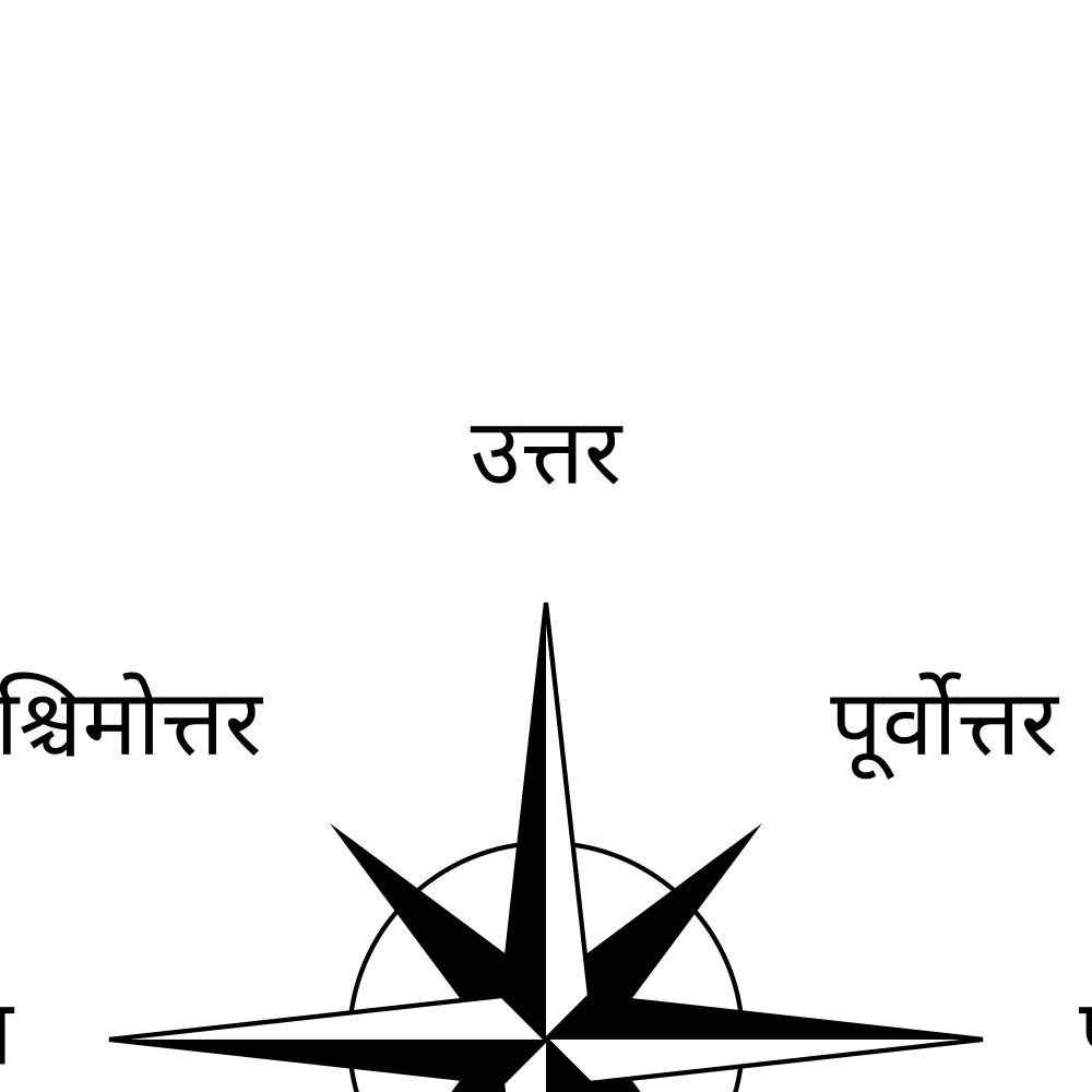 A poster of the cardinal directions (also known as compass points) in Hindi (दिशाएँ).
