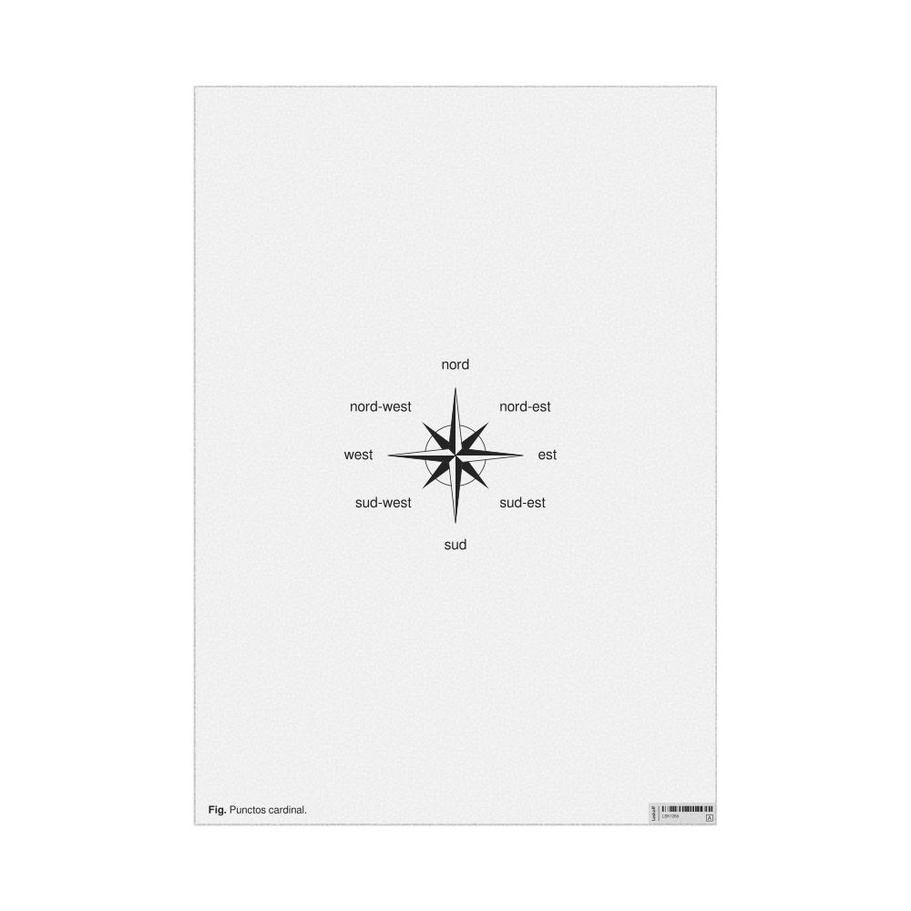 A poster of the cardinal directions (also known as compass points) in Interlingua (Punctos cardinal).