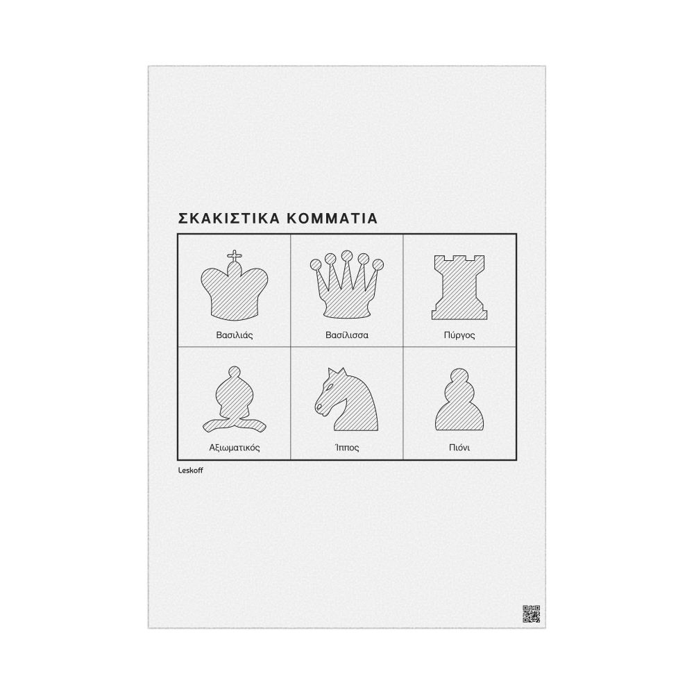 A poster of the chess pieces in Greek (Σκακιστικά κομμάτια).
