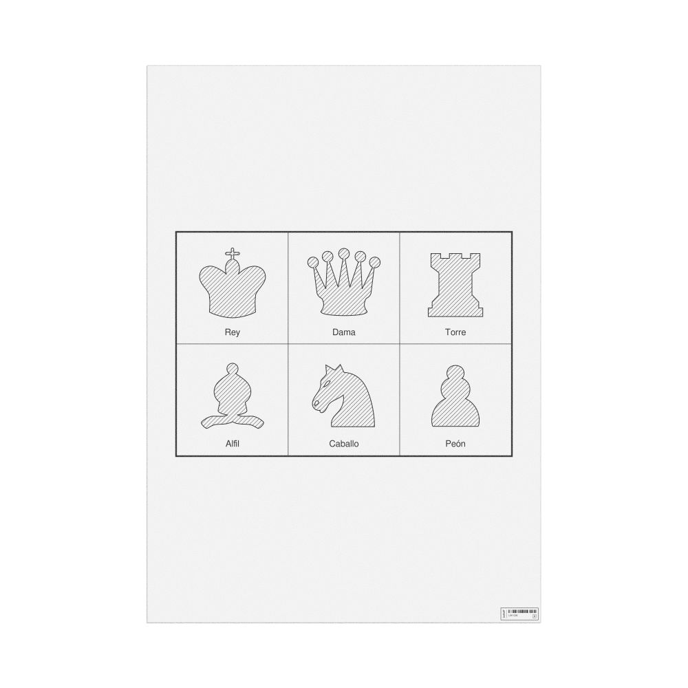 A poster of the chess pieces in Spanish (Piezas de ajedrez).