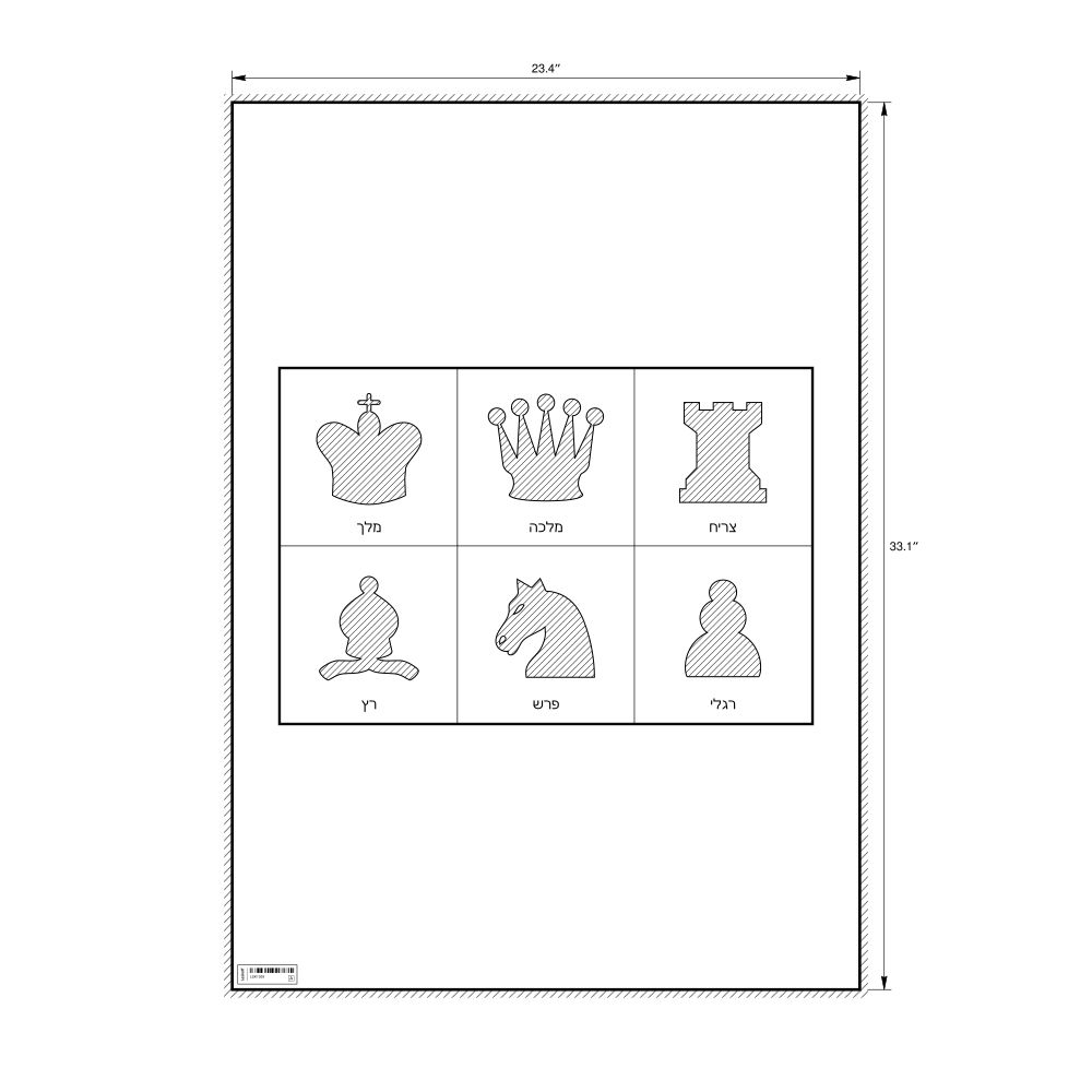 A poster of the chess pieces in Hebrew (כלי שחמט).