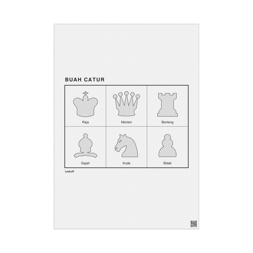 A poster of the chess pieces in Indonesian (Buah catur).