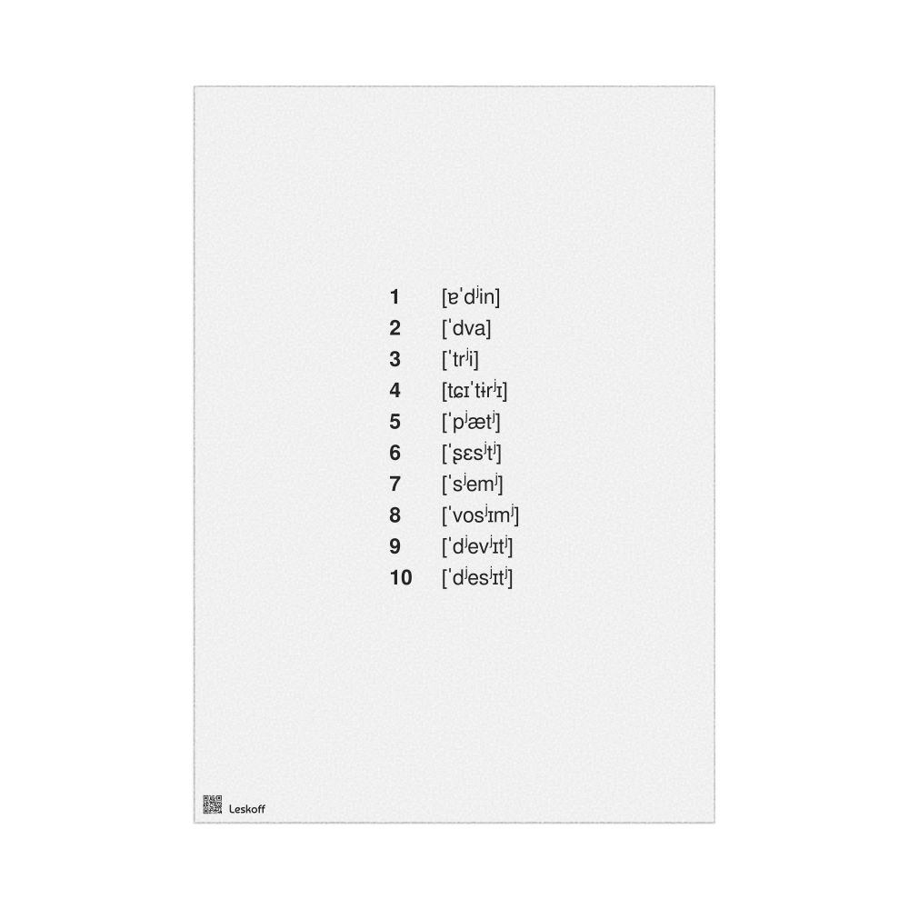 A poster of the numbers 1–10 in IPA (International Phonetic Alphabet) for Russian.