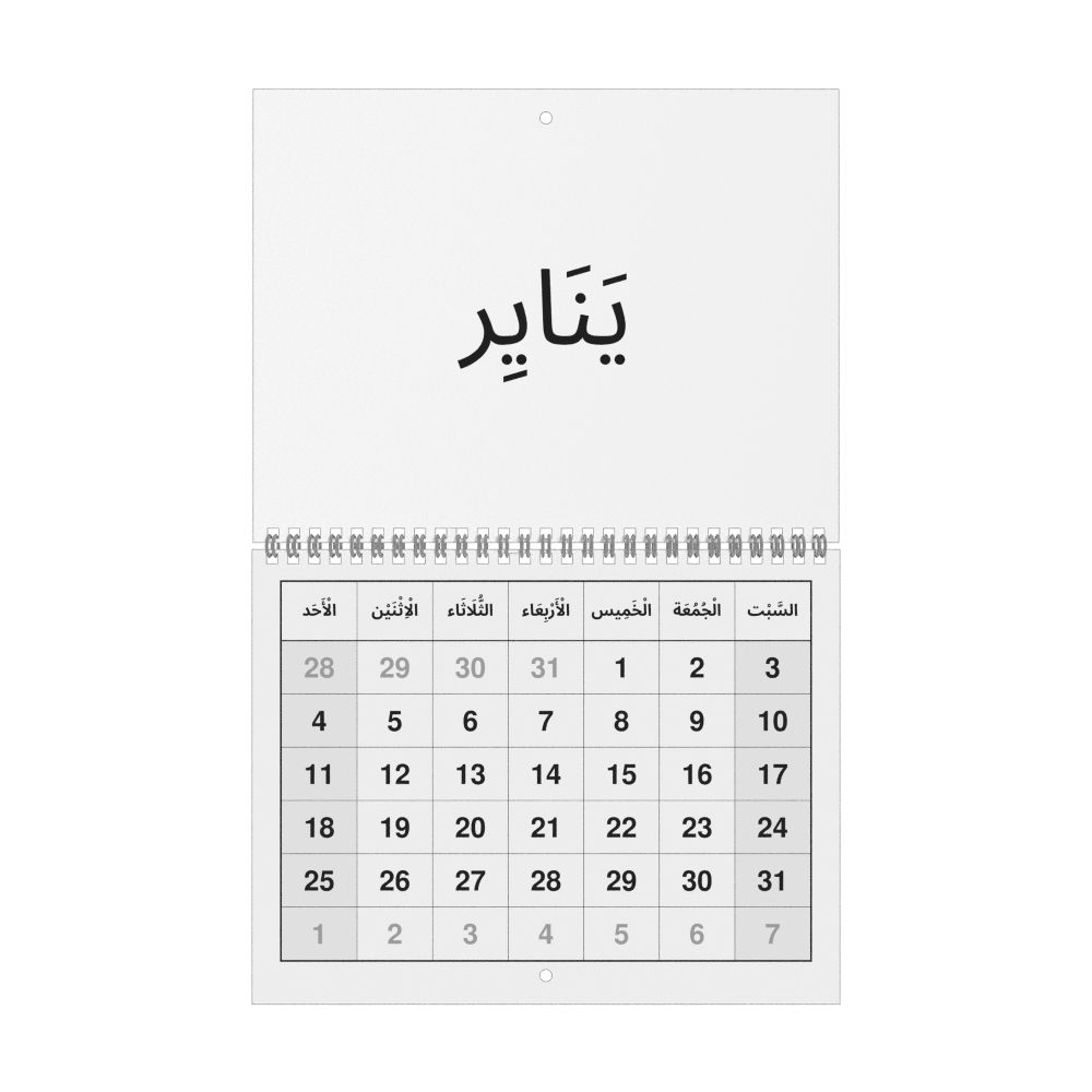 - Arabic heritage speakers and cultural connectors - For individuals seeking to maintain a connection to their history, ancestral roots, or the culture associated with the Arabic language, the calendar serves as a daily cultural marker. Use it in your home, office, library, or museum as a link to linguistic and cultural identity that integrates Arabic into your everyday life. Familiar language script and naming conventions may also provide a sense of home in a foreign environment.