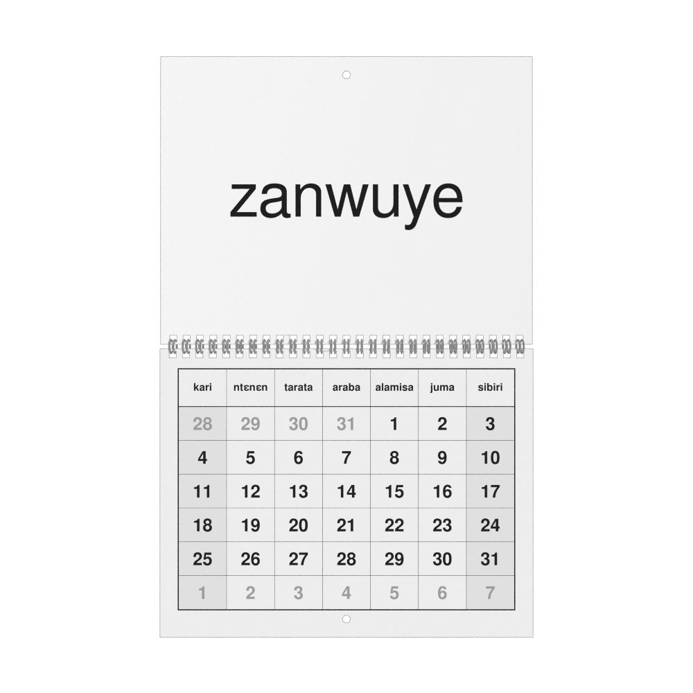 This calendar features the Bambara names of months and days of the week on top of a standard Gregorian calendar layout. Beyond its utility for tracking dates, it serves as an educational tool, cultural touchstone (cultural artifact), and functional decor (aesthetic object).