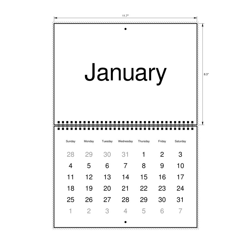 2027 Wall Calendar, English-Labeled, Sunday-Start Layout, Wire-Bound, 11.7 x 8.3 in (29.7 x 21.0 cm)