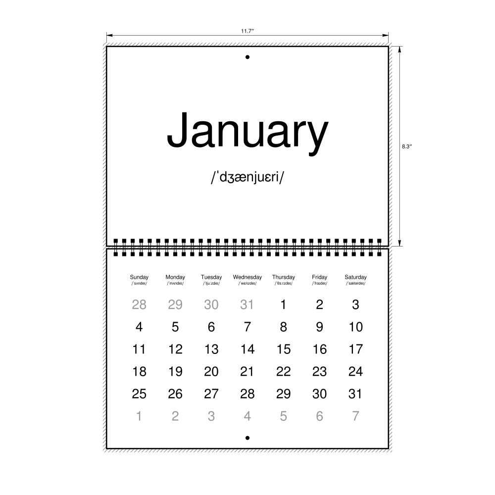 2026 Phonetic Wall CalendarEnglish-Labeled with IPA, Sunday-Start Layout, Wire-Bound, 11.7 x 8.3 in (29.7 x 21.0 cm)