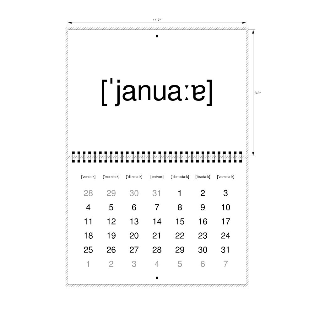2026 Phonetic Wall CalendarIPA-Labeled (German), Sunday-Start Layout, Wire-Bound, 11.7 x 8.3 in (29.7 x 21.0 cm)