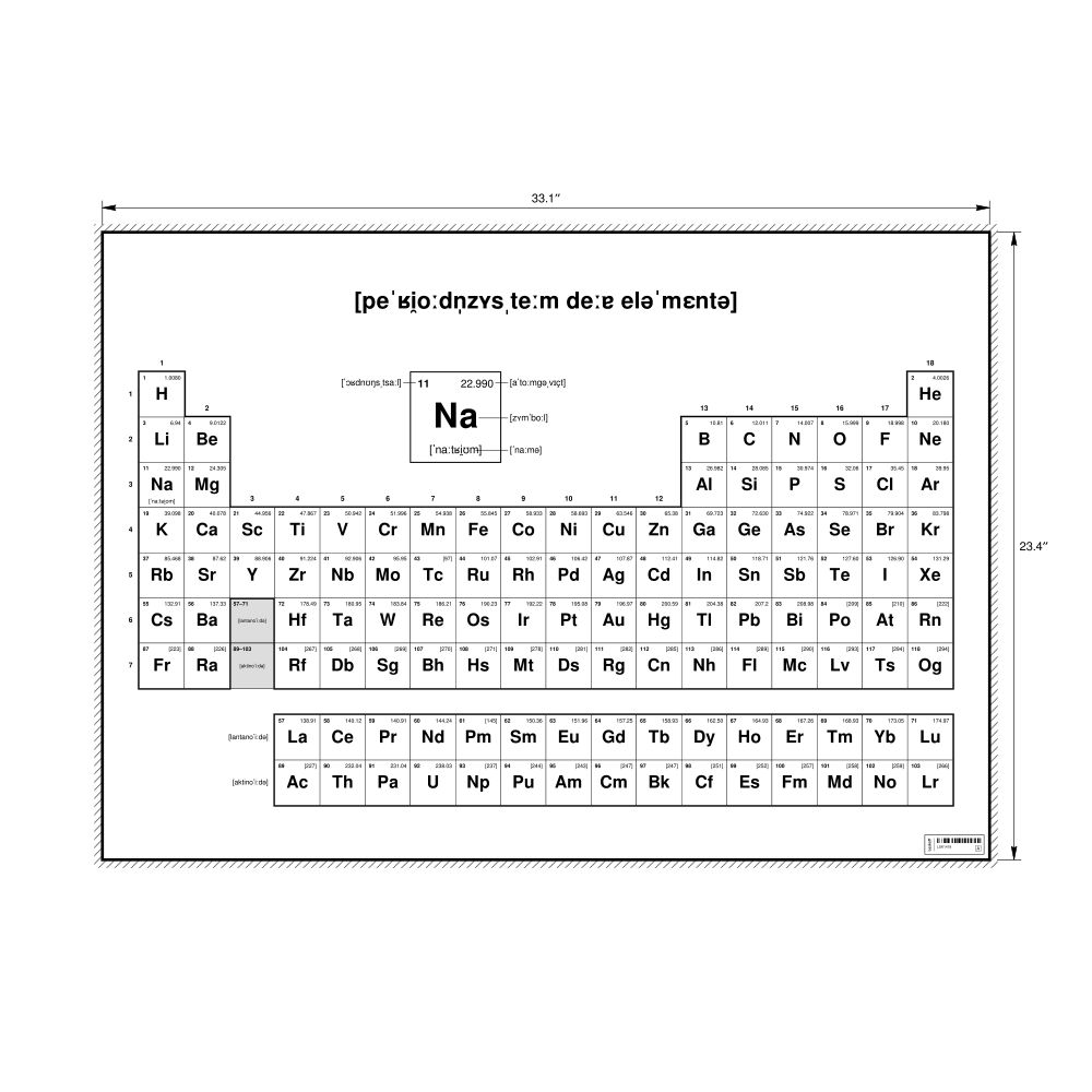 Phonetic Periodic Table Chart33.1 x 23.4 in (84.1 x 59.4 cm, Poster / Wall Chart), 18-Column Layout, IPA-Labeled (German)