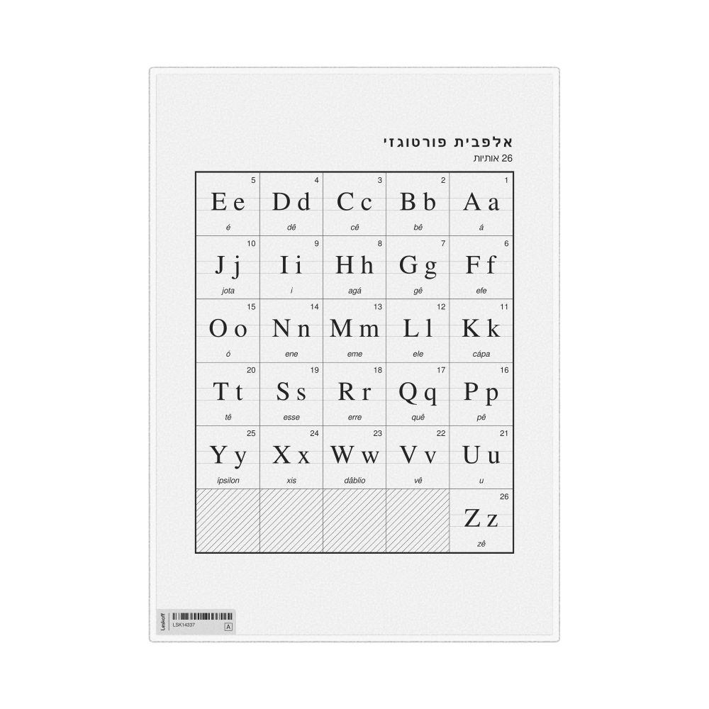 - Portuguese language teachers - This visual aid is suitable for classrooms, libraries, and Portuguese language learning centers. This variant is well-suited for teaching environments where Hebrew is the primary language of instruction.