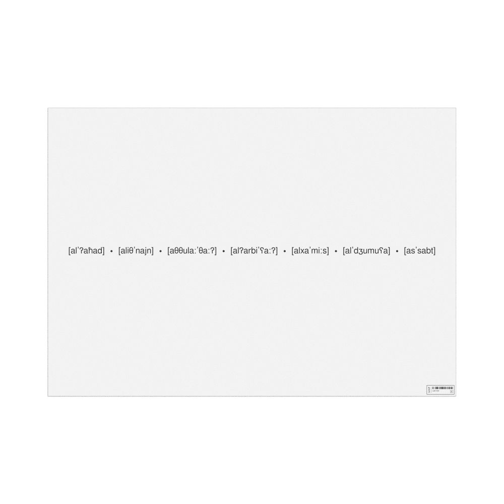 A poster of the days of the week in IPA (International Phonetic Alphabet) for Arabic.