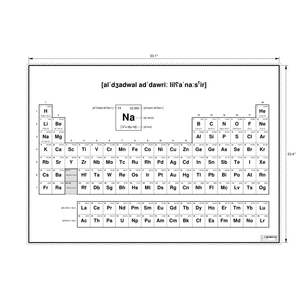 Phonetic Periodic Table Chart33.1 x 23.4 in (84.1 x 59.4 cm, Poster / Wall Chart), 18-Column Layout, IPA-Labeled (Arabic)