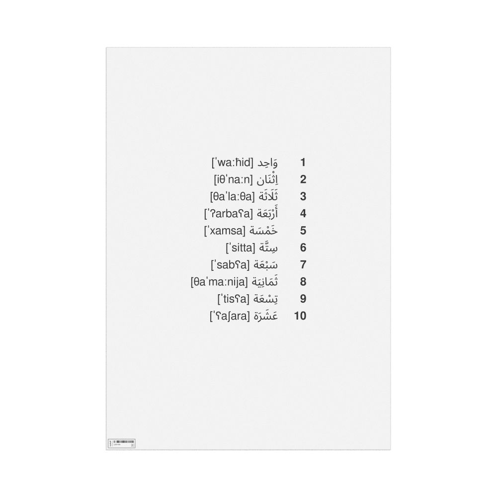 Numbers 1–10 Poster, IPA-Labeled (Arabic)