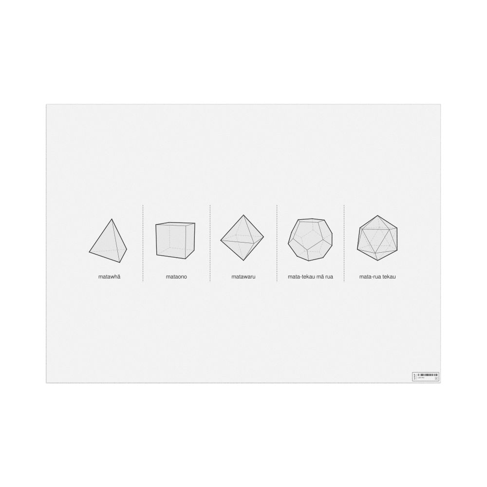 A poster of the Platonic solids in Māori (Ngā matarau rite).