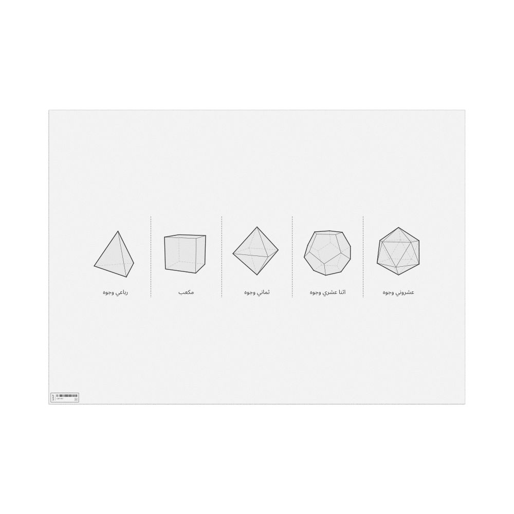 A poster of the Platonic solids in Arabic (مجسمات أفلاطونية).