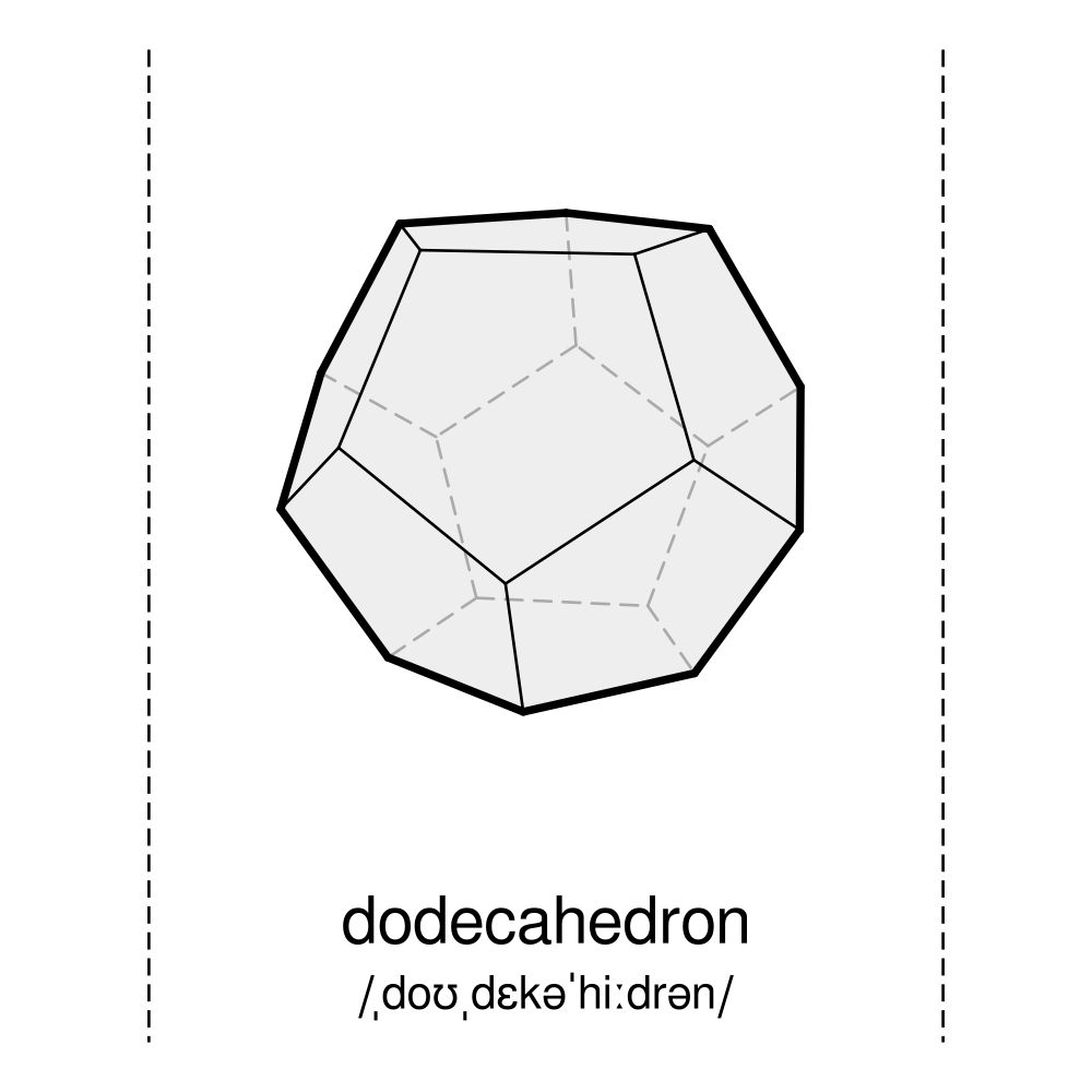 A poster of the Platonic solids in English with IPA phonetic transcriptions (pronunciation guides).