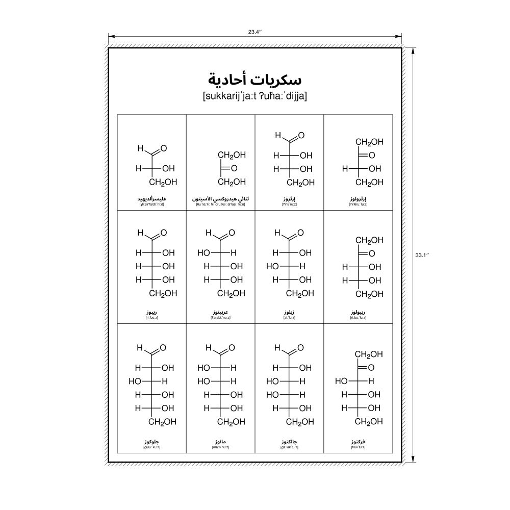 Monosaccharides Phonetic Wall Chart (Monosaccharides Phonetic Poster), IPA-Labeled (Arabic)