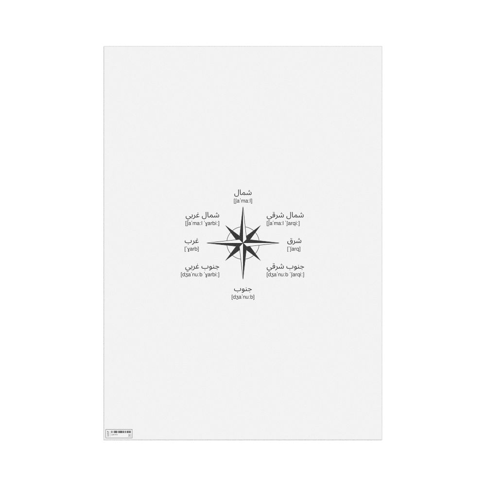 Cardinal Directions Poster, IPA-Labeled (Arabic)