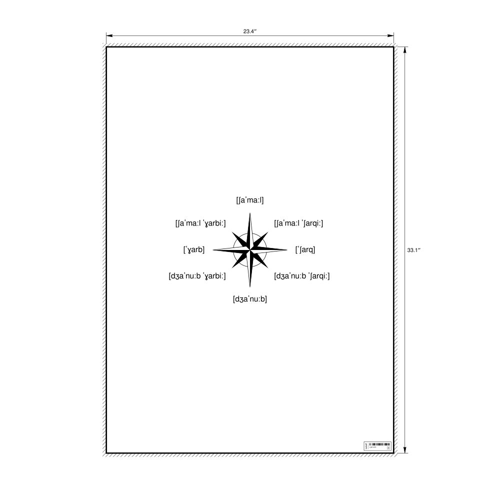 A poster of the cardinal directions (also known as compass points) in IPA (International Phonetic Alphabet) for Arabic.