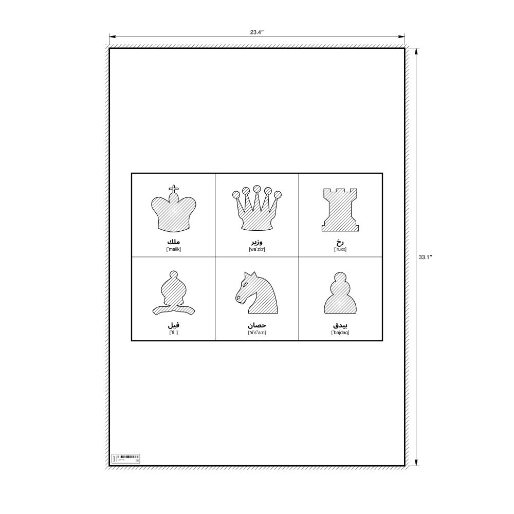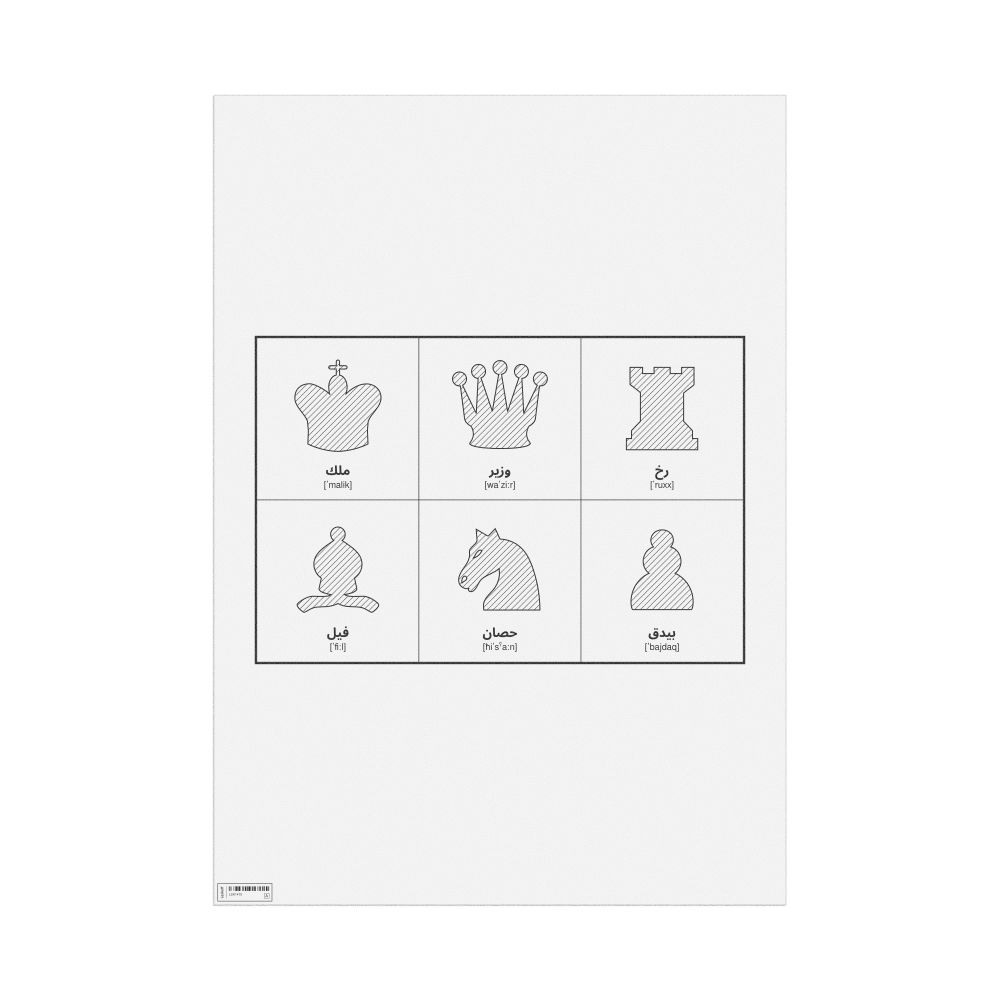 Chess Pieces Poster, IPA-Labeled (Arabic)