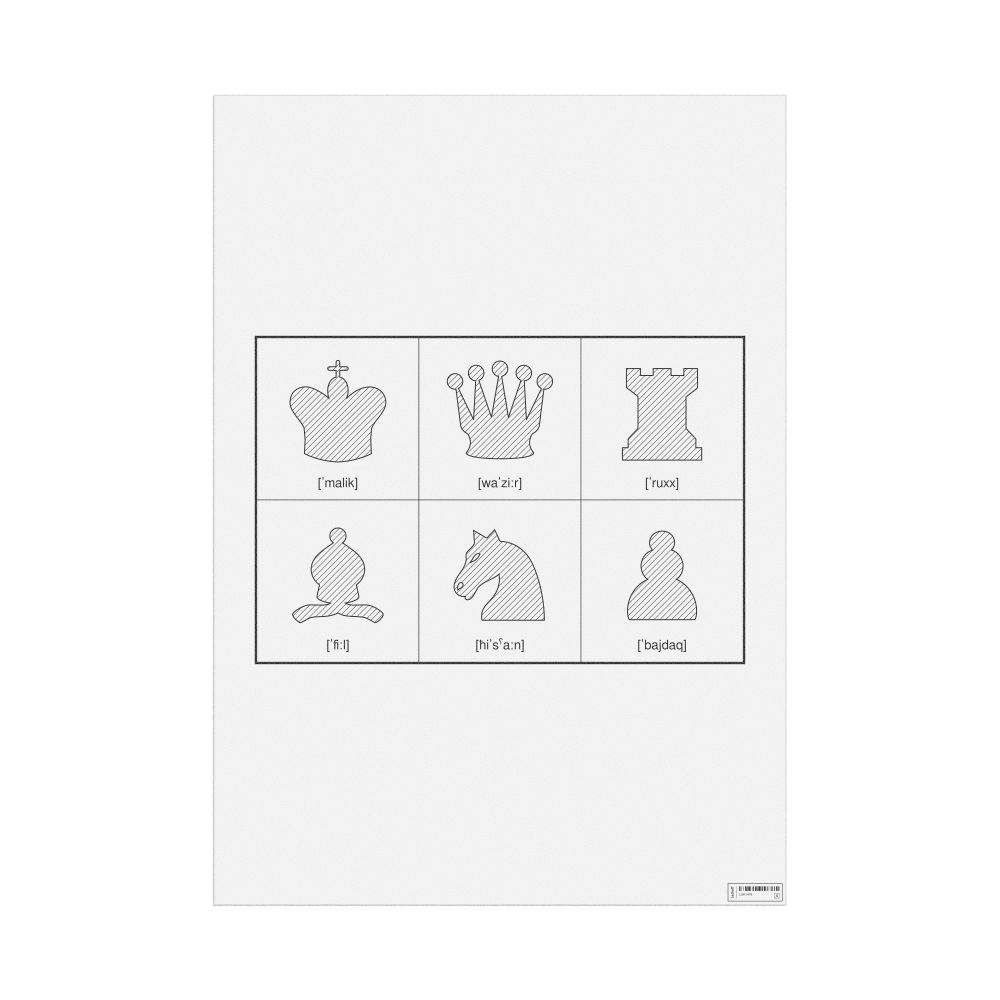 A poster of the chess pieces in IPA (International Phonetic Alphabet) for Arabic.