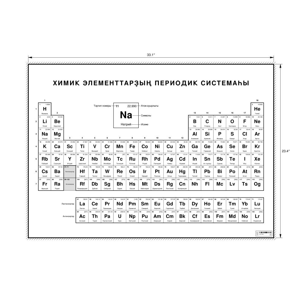 Periodic Table Chart, 33.1 x 23.4 in (84.1 x 59.4 cm, Poster / Wall Chart), 32-Column Layout, Bashkir/English-Labeled