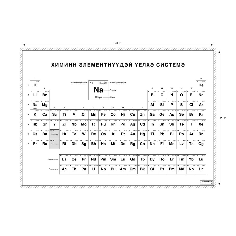 Periodic Table Chart33.1 x 23.4 in (84.1 x 59.4 cm, Poster / Wall Chart), 18-Column Layout, Buryat-Labeled