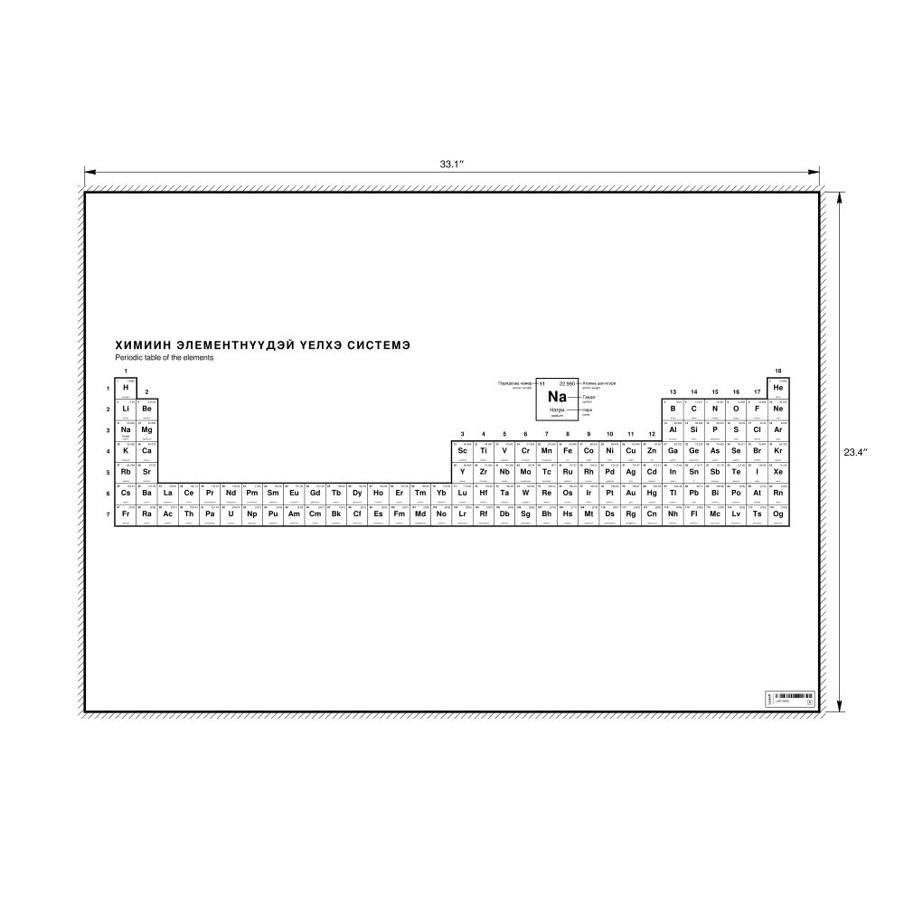 Periodic Table Chart33.1 x 23.4 in (84.1 x 59.4 cm, Poster / Wall Chart), 32-Column Layout, Buryat/English-Labeled
