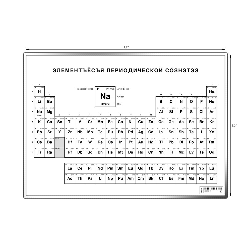 Periodic Table Chart11.7 x 8.3 in (29.7 x 21.0 cm, Desk Chart, Laminated), 18-Column Layout, Udmurt-Labeled