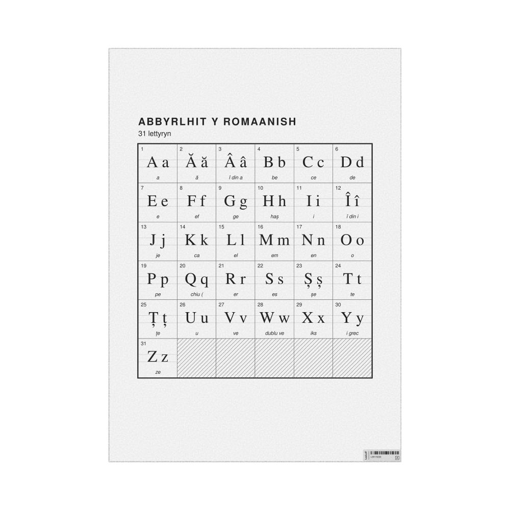 - Linguists and philologists - For both professionals and hobbyists, this alphabet print serves as a piece of linguistic art that presents the character inventory of Romanian as a linguistic (graphemic) dataset. Add this to your Romanian collection to complement your studies and research. A mixture of Romanian letters and Manx metatext makes it a unique, visually intriguing illustration of linguistic diversity and interaction.