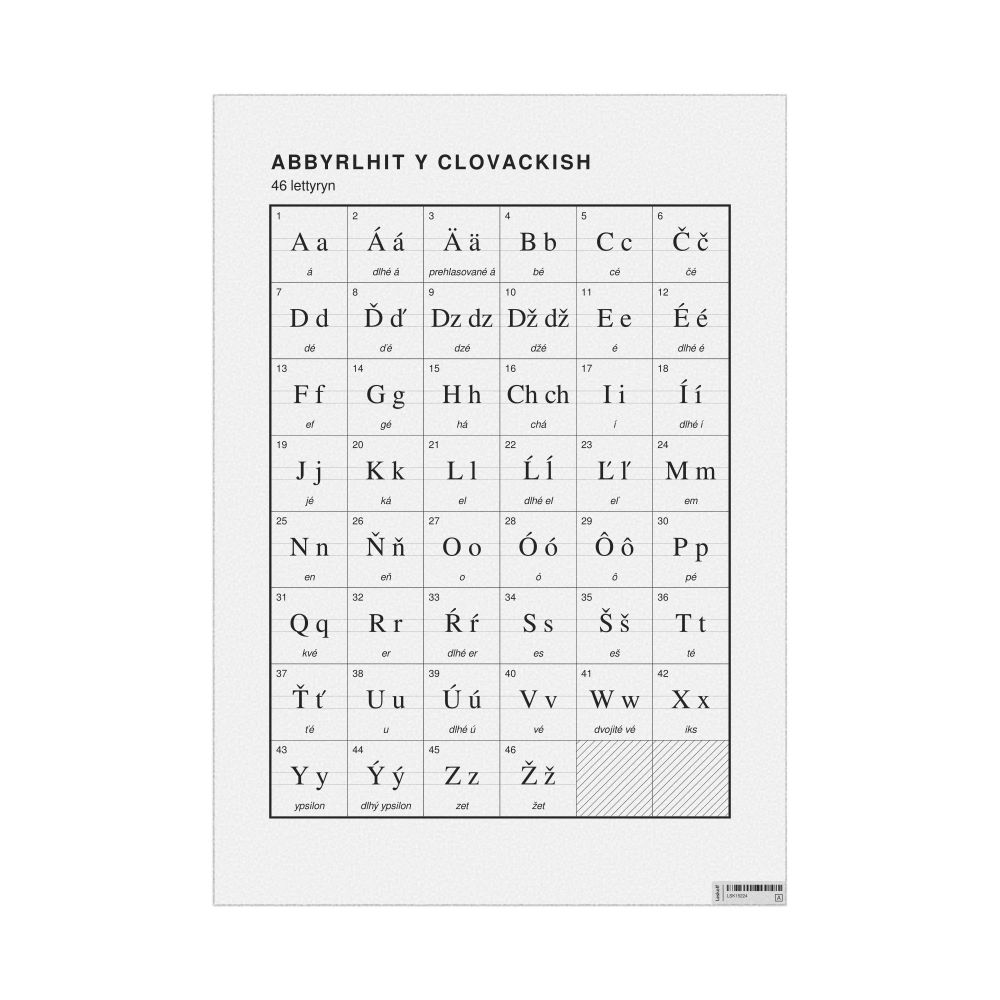 The Slovak alphabet chart (the full set of letters) labeled in Manx (Abbyrlhit y Clovackish) in the 23.4 x 33.1 in (59.4 x 84.1 cm, poster / wall chart) format.