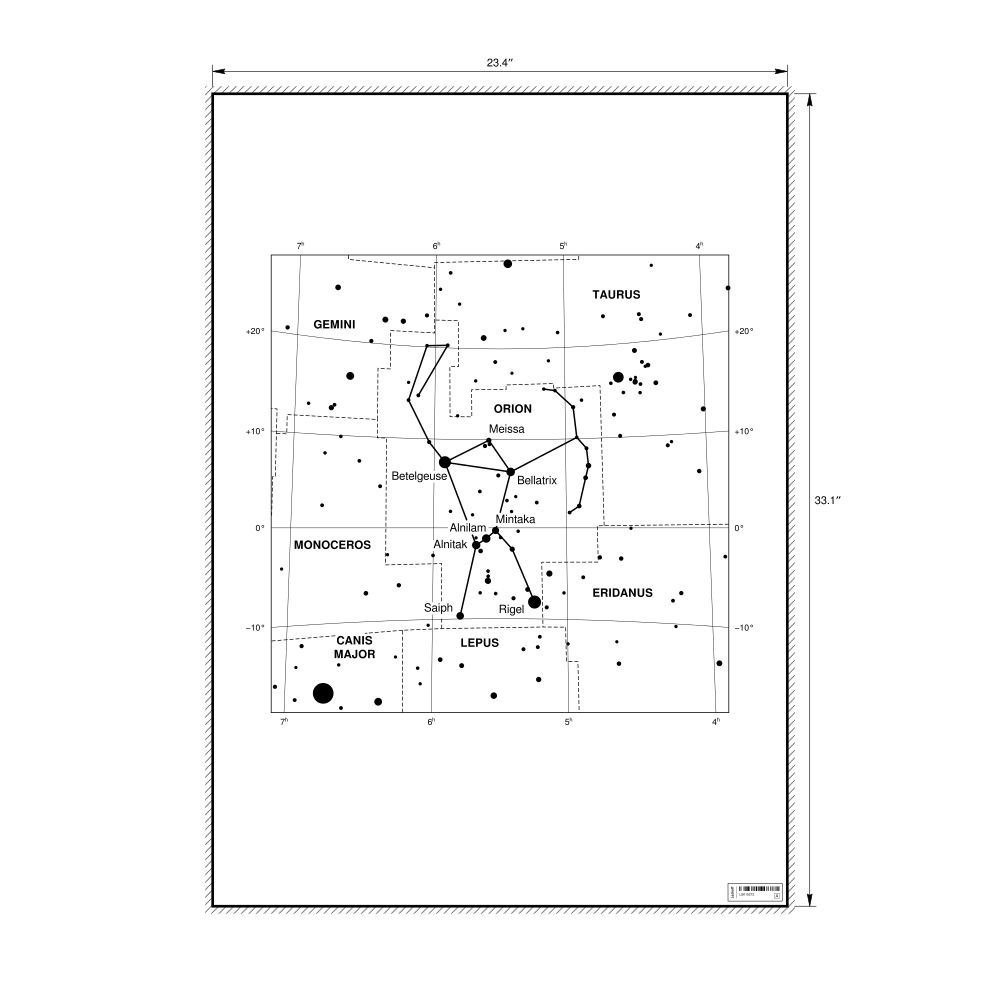 A poster featuring the Orion constellation chart.