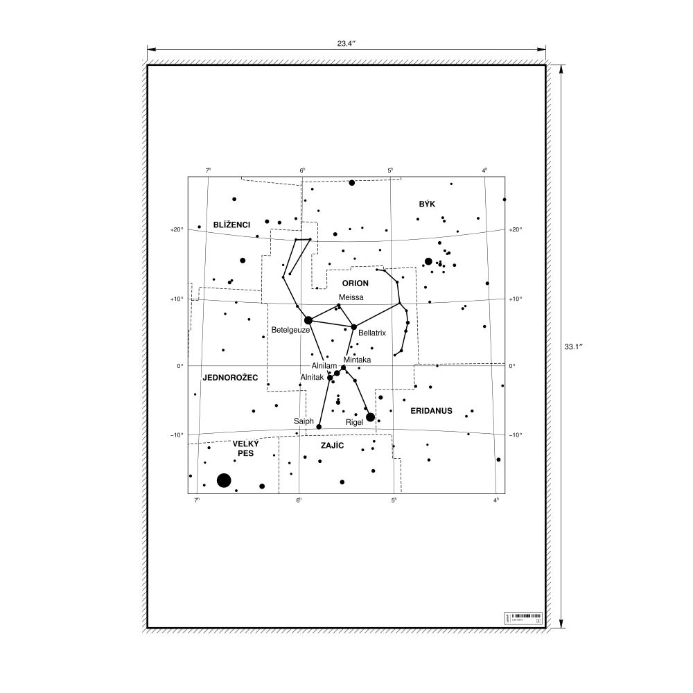 A poster featuring the Orion constellation chart in Czech (Orion).